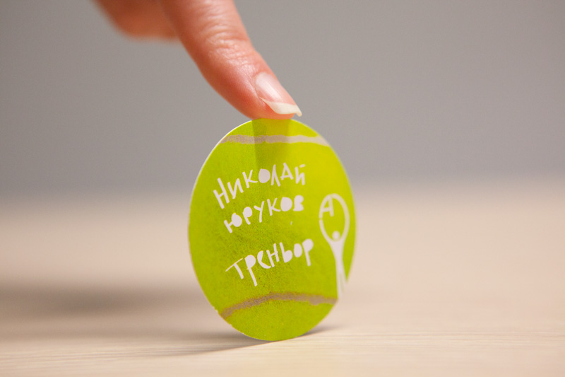 名刺がテニスボールの形をしています。これは「Akademik Tennis Club」というテニスクラブの名刺だそうです。