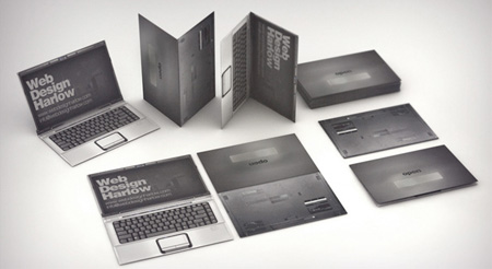 WEBデザイン会社であるHarlow studioの名刺。名刺がノートパソコンのような形状をしています。飾って楽しい名刺だと思いませんか。
