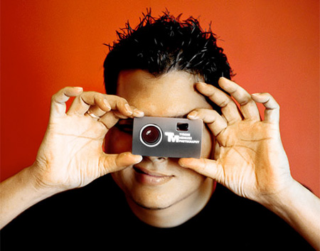 ドバイのフォトグラファーTyrone Menezesの名刺。カメラの形をした名刺となっており、名刺を渡されただけでどのような仕事をしているのかがわかるようになっています。