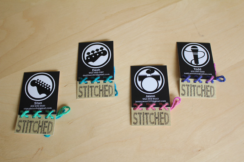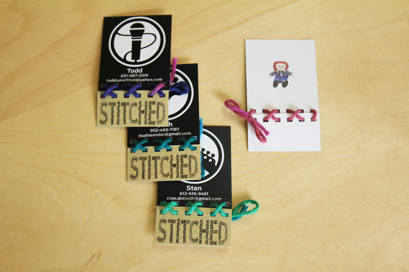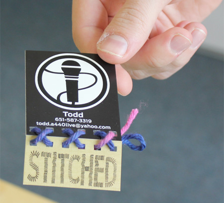 Alex Krasnyによってデザインされた縫いあわされた名刺。名刺を縫い合わせるなんて斬新なアイデアだと思いませんか。