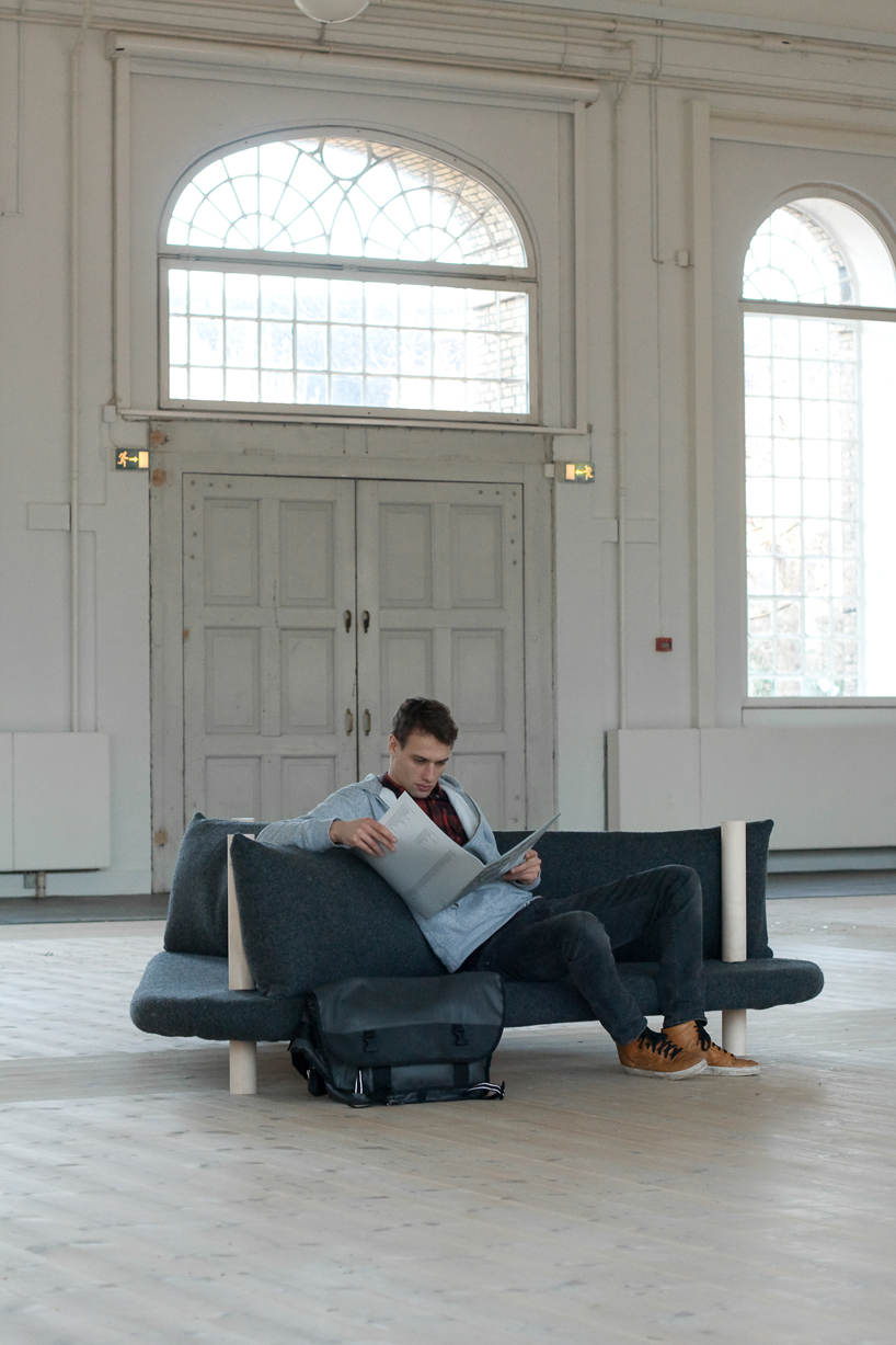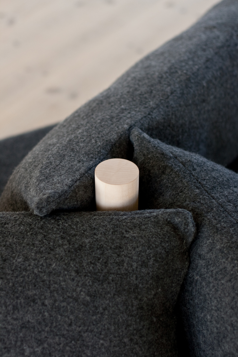 こちらがそのソファー”Holmen”です。4つの丸い支柱が巧みに配置されることによりソファーに座る人それぞれが別々の方向を向くことを可能にしています。