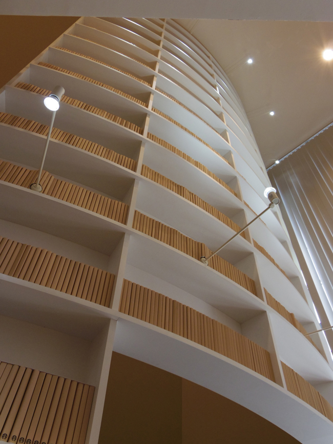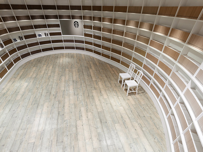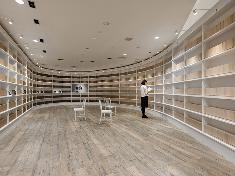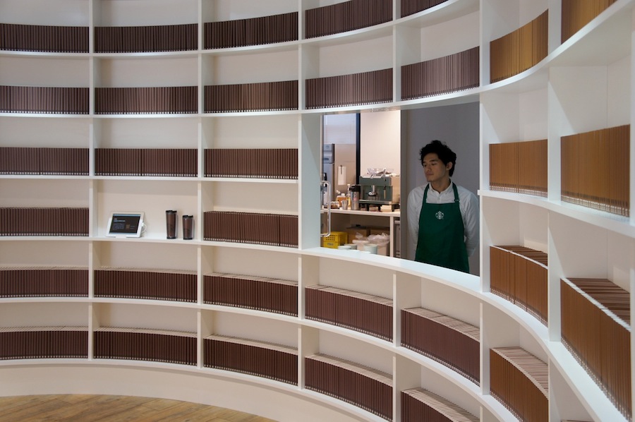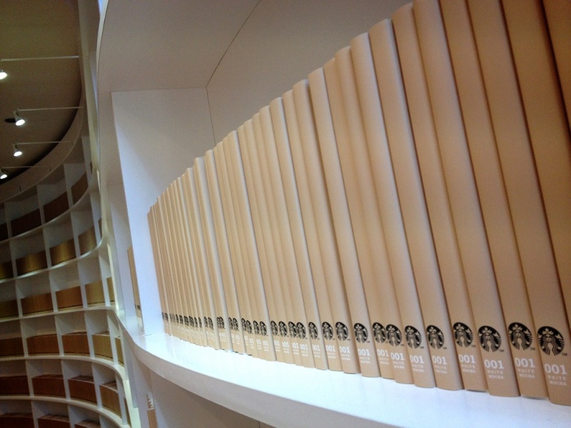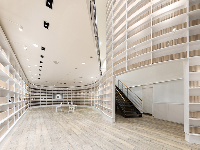 店内に入ると、従来のスターバックス店舗のイメージとは程遠い、図書館のような異質な空間が広がります。なんでも、美しい曲線の白い壁は柔らかいミルクのまろやかさを表現しているそう。