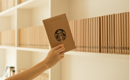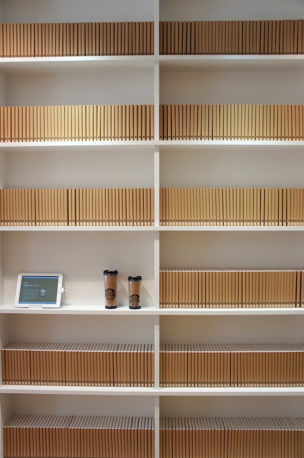 来場者は歩き回りながら、本棚に並んだ本を自由に手に取り、中に書かれている情報を見比べながら、まるで一冊の本を選ぶようにスターバックスのドリンクと接することになります。
