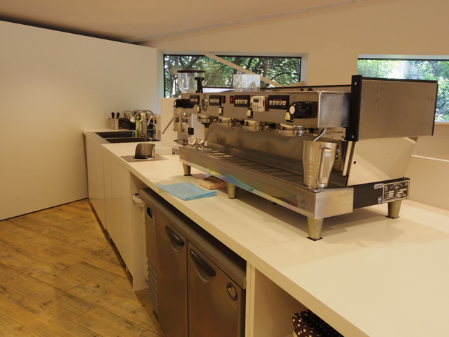 2階には椅子と簡単なテーブルも設置してあり、一階で買ったエスプレッソをここでゆっくりと味わうことも出来るようです。自然光が入り込み美しいですね。