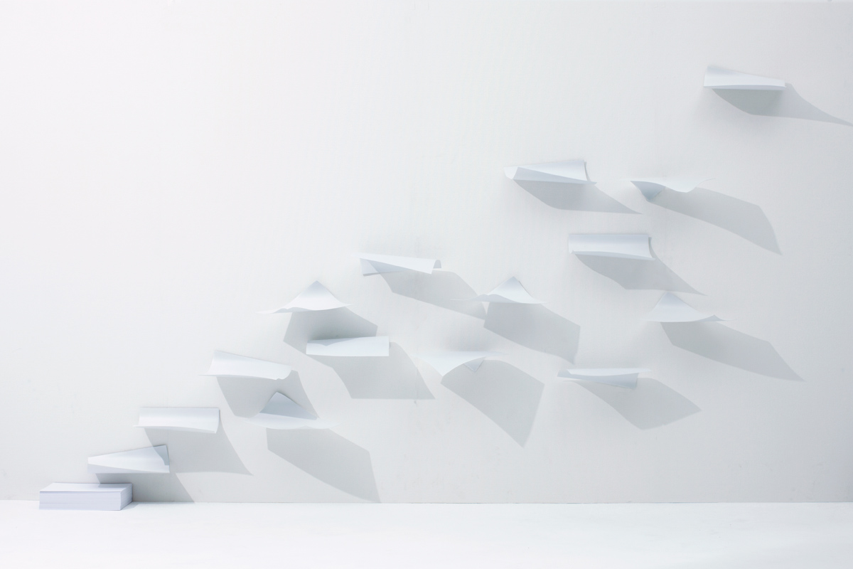 はらはらと風に吹かれ紙の束が舞い上がりました。もちろんこれは壁掛け棚なのですが、本当に、紙が、風で舞い上がっているようにみえます。