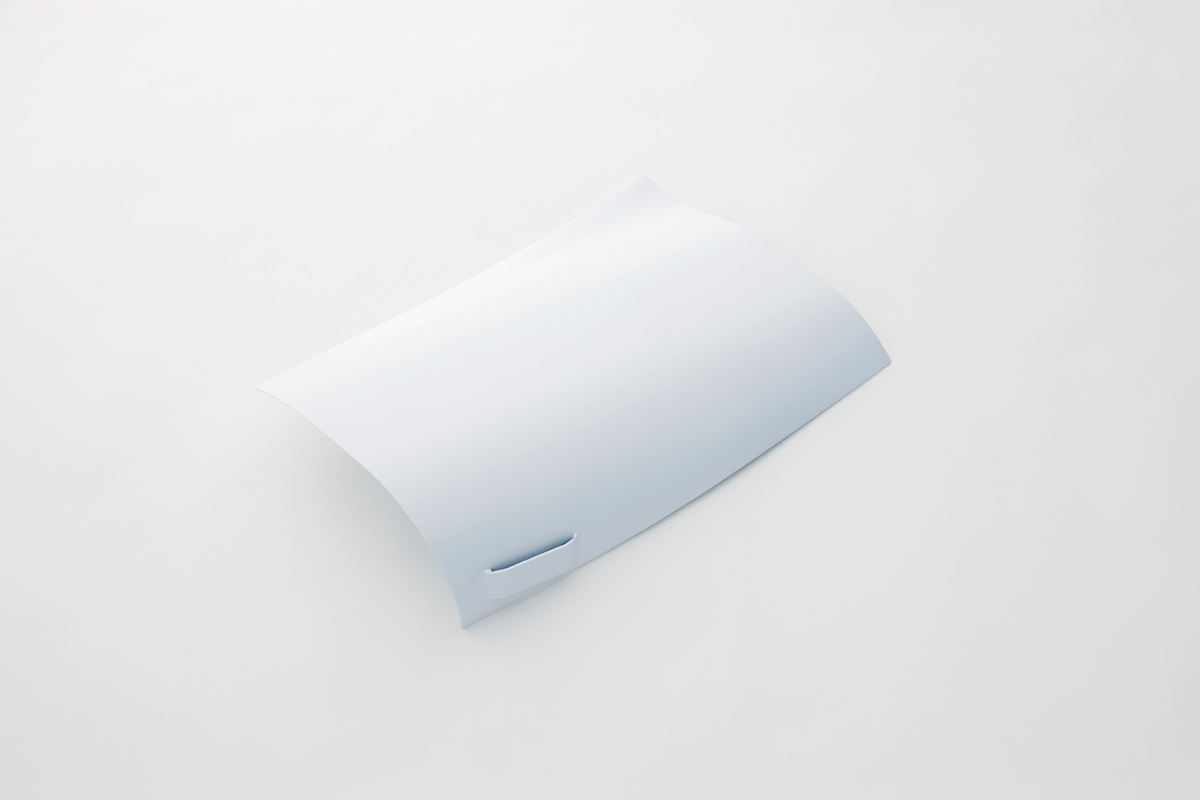 A4サイズの薄いスチールを折り曲げてつくられた言うこの作品。裏表どちらも利用可能だということで、発想の幅が広がります。