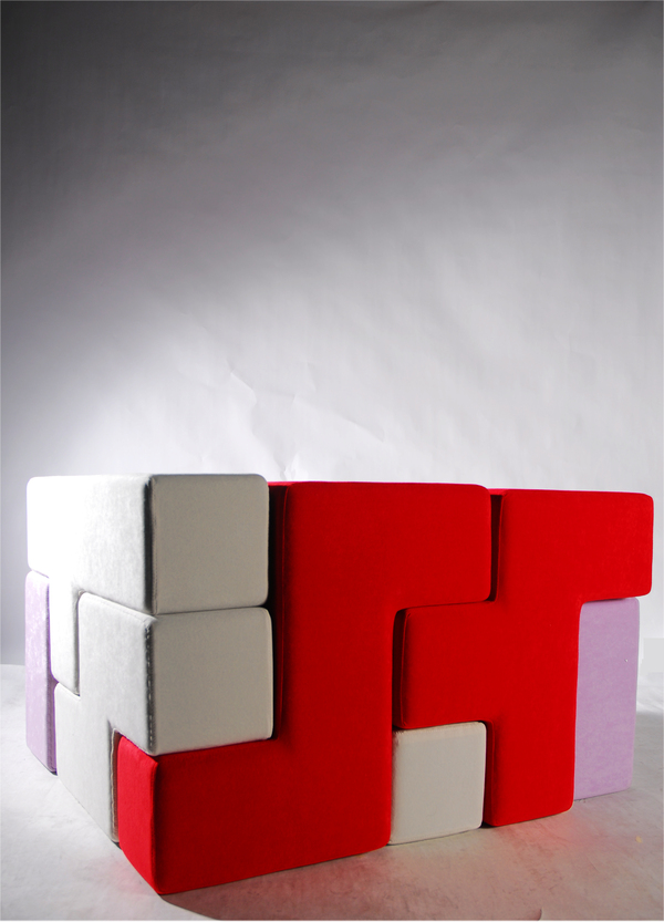 テトリスのような形の柔らかい素材を組み立てることで自由自在に自分の好きな形に組み立てることの出来る家具。それが「TAT-Tris」です。