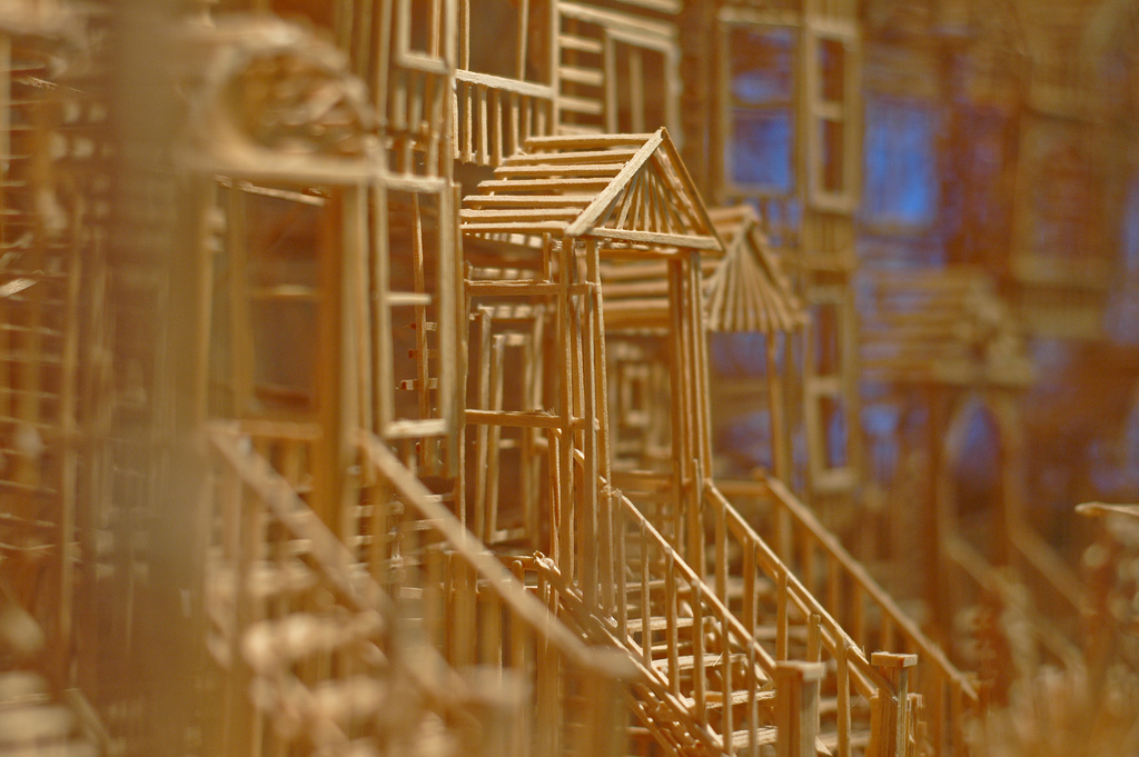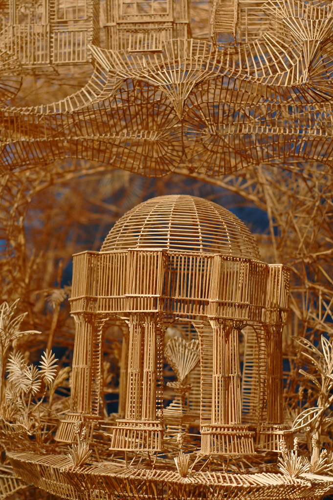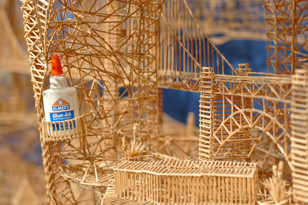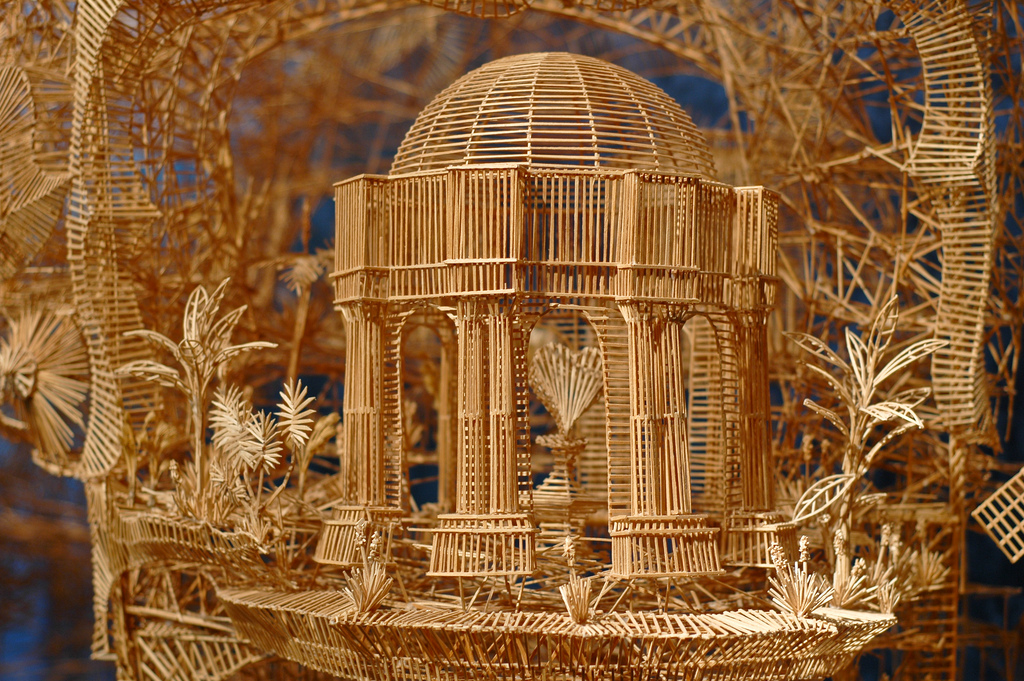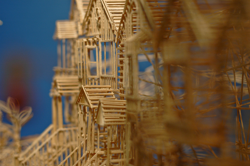 一本一本の爪楊枝を使い、丁寧に組み立てて行く。この作品を完成させるまでにおよそ3000時間を費やしたそうです。