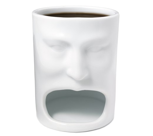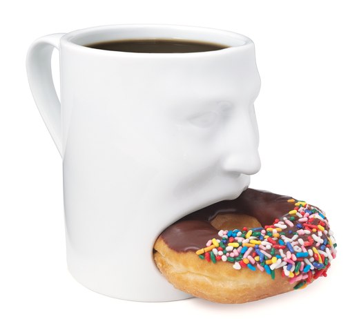 しかも、このマグカップ「Face Mug」はこんなドーナツもあんぐりとその口にくわえることも出来るようです。