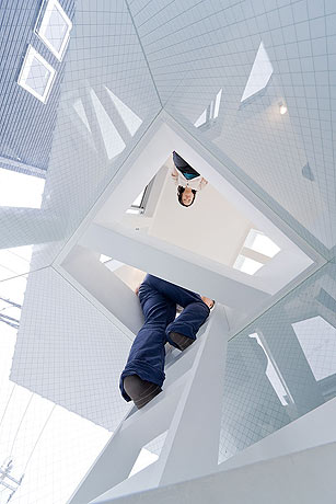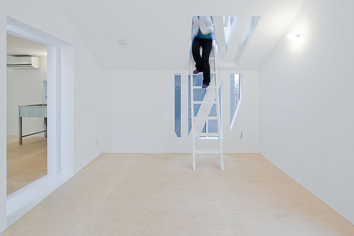 で、こちらが実際の部屋。どうやらお部屋の中もはしごでつながりをもっているようです。白い空間が非常に綺麗ですね。