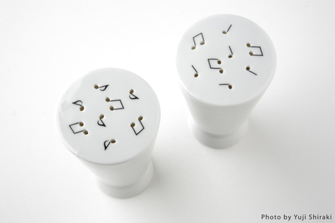 塩コショウが出る穴が音符になっているソルト&ペッパーです。塩を振る際の微かな音を感じコショウを振るという些細な行為も楽しむことであなたの手料理がより一層おいしくなるかもしれません。