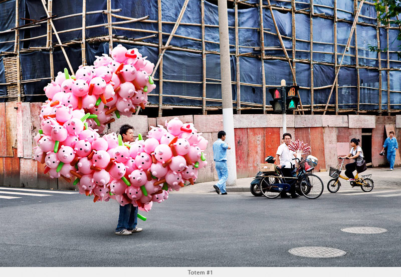 今度は風船のようなものを手にした中国上海の出稼ぎ労働者。
