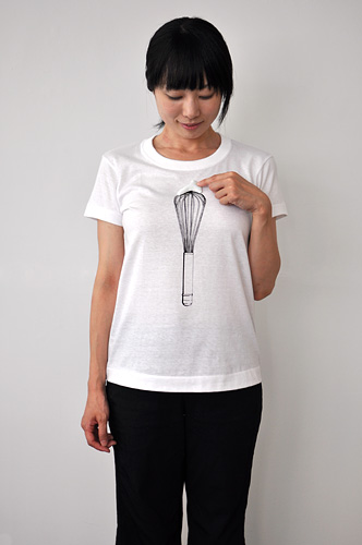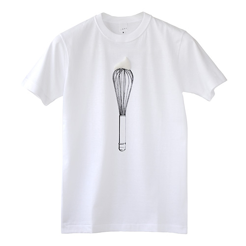 こちらは「泡立器」という名前のTシャツ。名前の通り泡立器がプリントされており・・・