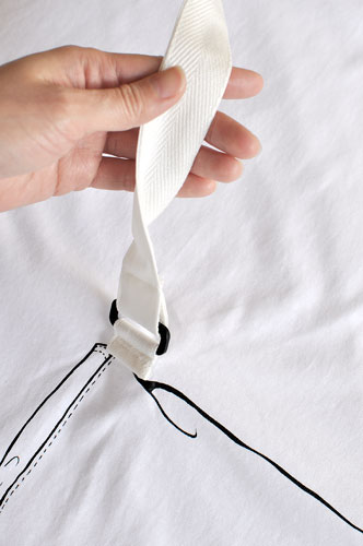 こちらは「シキサイ」ブランドのTシャツ「カバン」。カバンの絵がプリントされており、紐の部分はプリントとしてではなく実際につけられている。