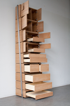 そんな点に、目を付けたデザイナーが非常に面白い棚をデザインすることに成功したようだ。その名も「Staircase」。その名の通り、階段にもなる引き出しだ。