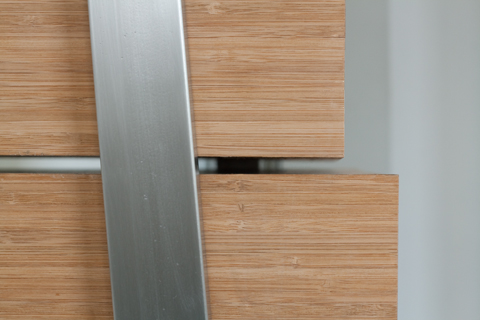 一般的に使い引き出し。上の段との不自然な隙間。そして上の段にいくにつれて徐々に細身が買っていくこの棚の形状。