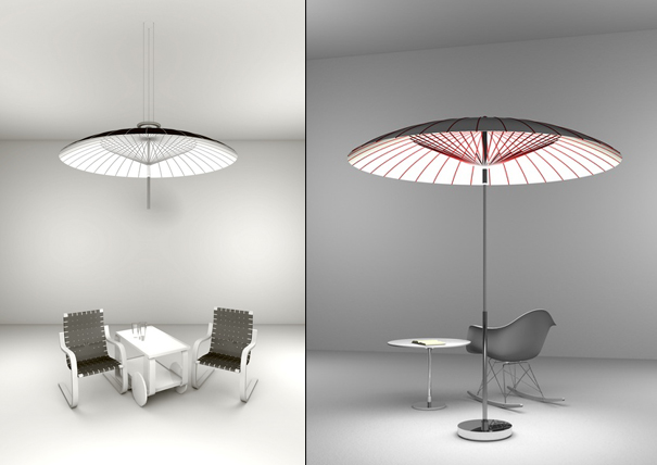 太陽の照る、日中は日傘として機能し夜になるとその蓄えられたソーラーエネルギーにより、斬新なデザインの照明器具になる傘があるといったらあなたはどう思うだろう。