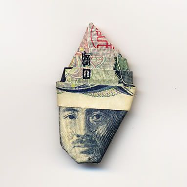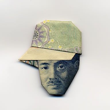 こちらもハットをかぶったタイプの野口英世。人物を全面に押し出すことが多いせいかお札で折った折り紙アートはこういった、かぶり物が多い気がする。