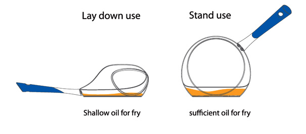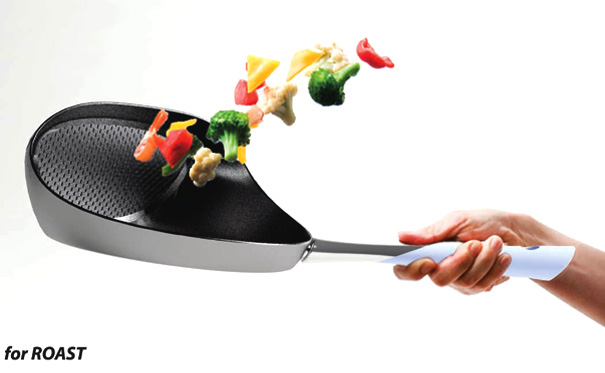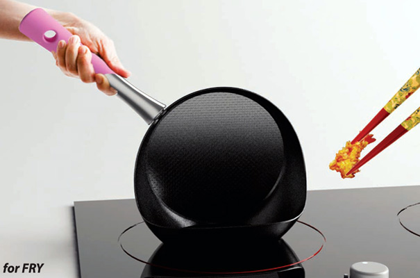 ひとつのフライパンで炒め物も揚げ物も出来るフライパンがデザインされた。