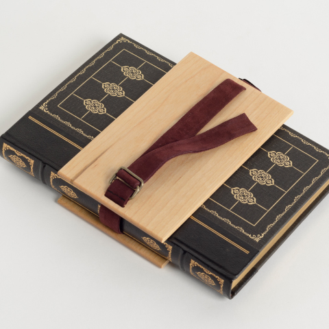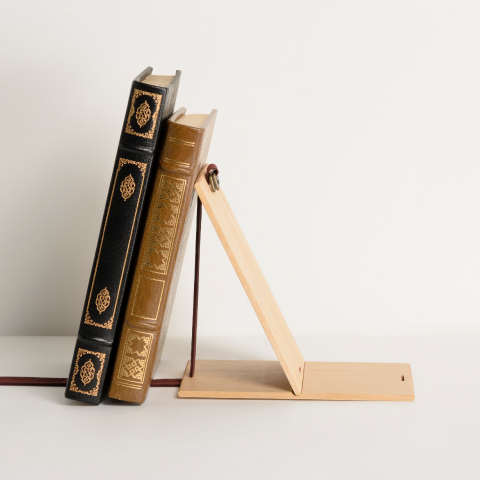 上の写真が愛蔵していた本を誰かに贈る為のブックエンド「link」。贈られた本に包んで使い、それがそのままブックエンドになるという代物だ。