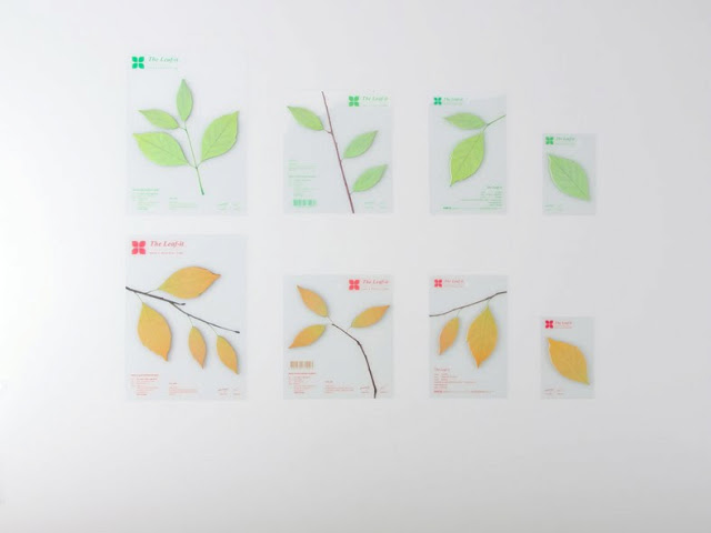 上の写真が本からのぞくかわいい葉っぱの付箋。ポストイットならぬ「Leaf-it」という商品名がつけられたこの葉っぱの付箋。
