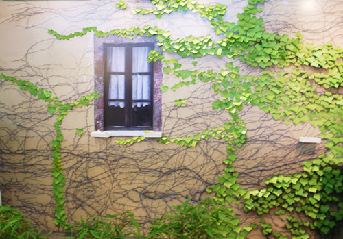こちらはツタに絡んだような葉っぱの付箋。これがたくさん壁に貼付けられるとどうなるのか・・・。