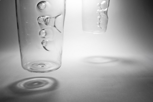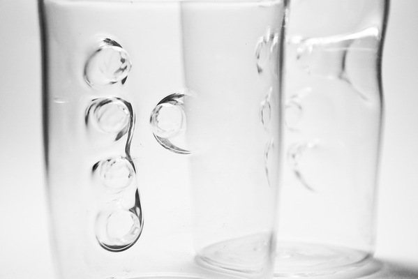 ボウリングの球を持つ時のような穴だと想像して頂ければわかりやすいと思う。ちなみに、ボウリングの球は通常3本だがこのグラスでは5本の指穴がある。