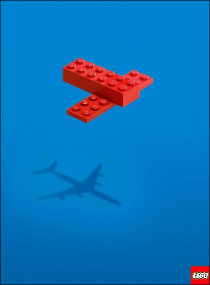 こちらは以前も紹介したレゴの広告ですね。「子供のめにはレゴで出来たこんな形が飛行機にみえます」というクリエイティブな広告です。