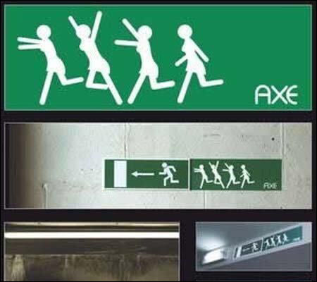 日本でもおなじみのAXEの広告です。AXEの製品を使うとその独特な匂いでモテモテになり女性がおいかけてくるため、女性から逃げる為に非常口を使わなくてはならないという、非常口の使い方を間違っているユーモア溢れる広告です。