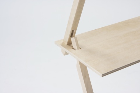 パーツの連結部で交わる二本の支柱と天板がお互いを支え合う、強固な三角構造の棚「PROP」4