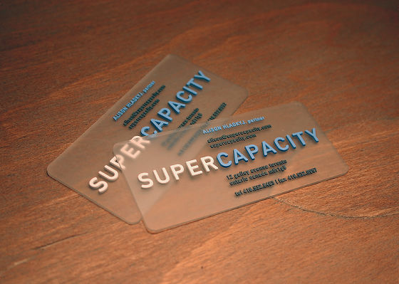 Super Capacityの名刺はなんとウォータープルーフ。水にぬれても安心ですね。半透明になっているため見た目にも涼しげな名刺となっています。