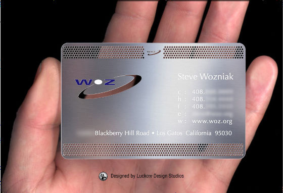 こちらのメタリックな質感の名刺はもうご存知ですよね。アップルの共同創設者でありコンピューター・エンジニアのスティーブ・ウォズニアック氏の名刺です。