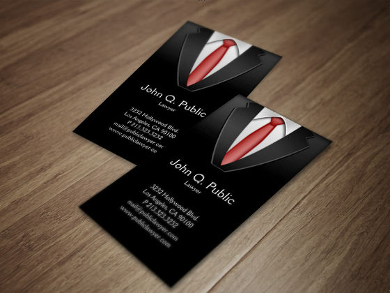 ブラックスーツの絵がかいてあるビジネスカードです。これはこれで印象に残る名刺ですね。