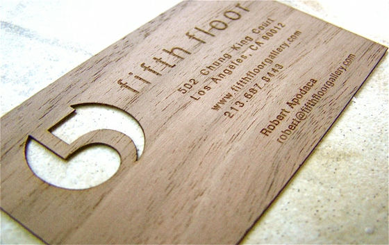 素材の質感を大事にした名刺。この名刺は木で出来ています。名刺をもらった相手は通常の紙の質感とは違った感触を得るため、印象に残りやすくなります。