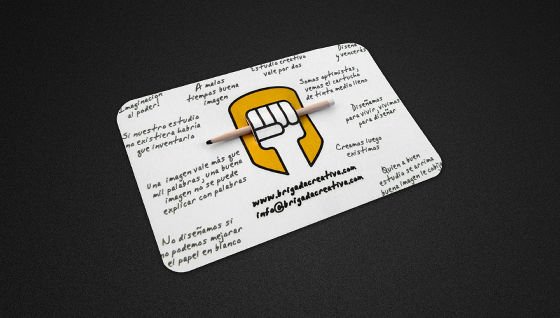 デザインスタジオBrigada Creativaの名刺です。鉛筆を握りしめる形の名刺となっています。