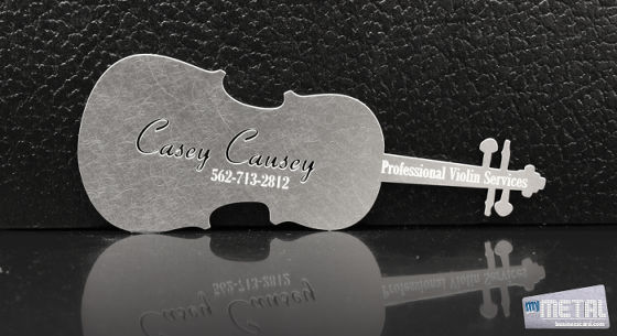 こちらはバイオリンの形をした名刺です。こんな形の名刺はみたことがありません。