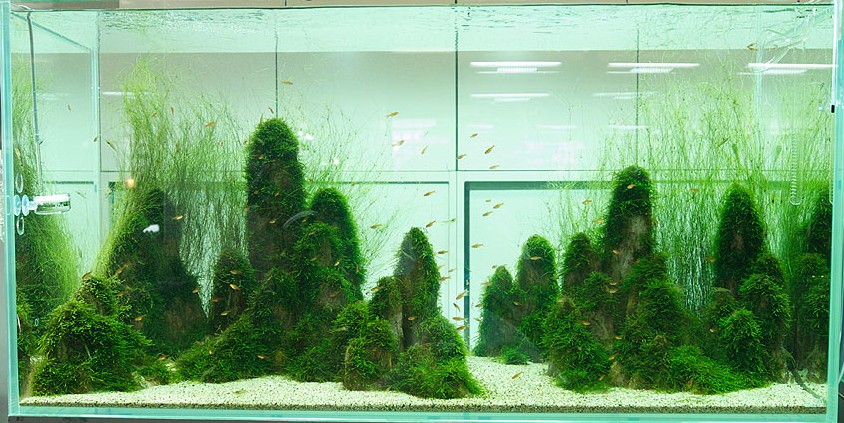 水草で覆われた水槽の中の山々。叶わない夢ですがこの世界に住んでみたい気がします。