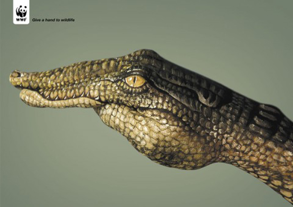 こちらは手にワニを描いたハンドペインティングです。ワニのゴツゴツとした皮膚を見事にボディペインティングの技術で表現しています。