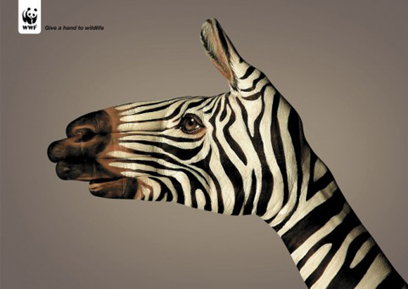 今度はシマウマです。手のひらに描くことによってシマウマを見事に表現しています。親指の部分が耳として描かれています。