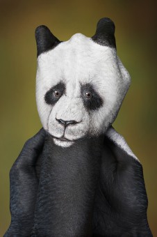 こちらはゾウ。ゾウの牙までボディペインティングの技術によって表現されています。手そのものにある、シワをぞうの表面のしわになぞらえ、そのものの質感を見事に表現しているハンドペインティングと言えるでしょう。