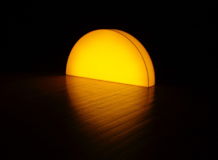 遠くからみると海に沈み込んでいく夕陽のよう。フロアに反射した間接照明のひかりがよりいっそう、それをそれらしくみせています。
