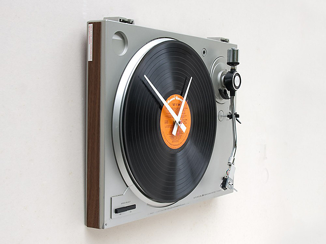 まずはじめにこちらはレコードプレイヤーで出来た時計です。なんと、きちんとレコードも組み込まれています。
