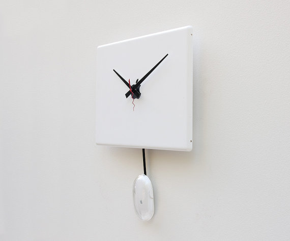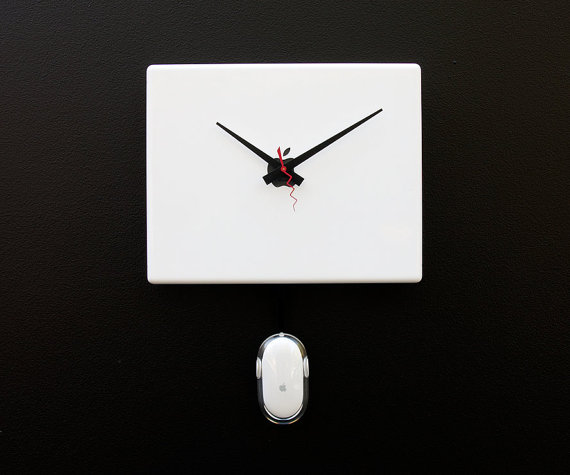 おっと?なんとこちらはMacBookではありませんか。それに下についている振り子はマウスでした。Macのノートブックがなんと時計に大変身です。