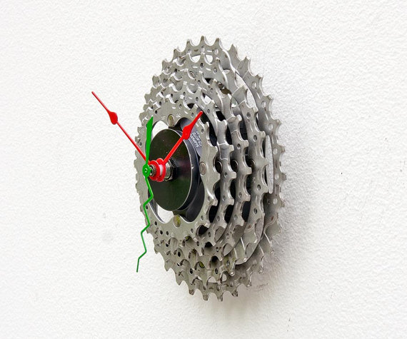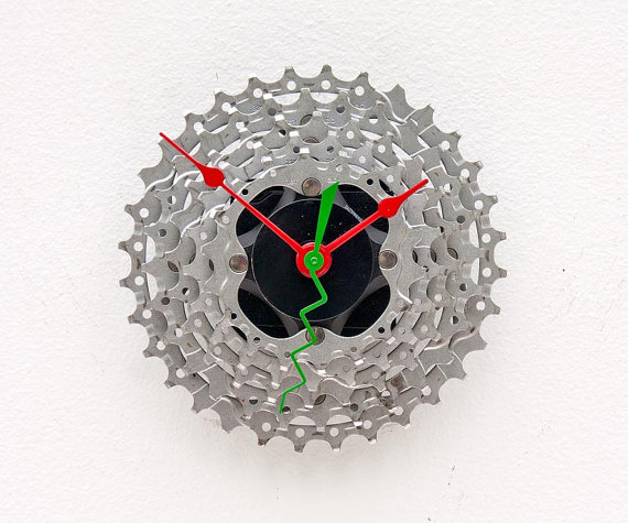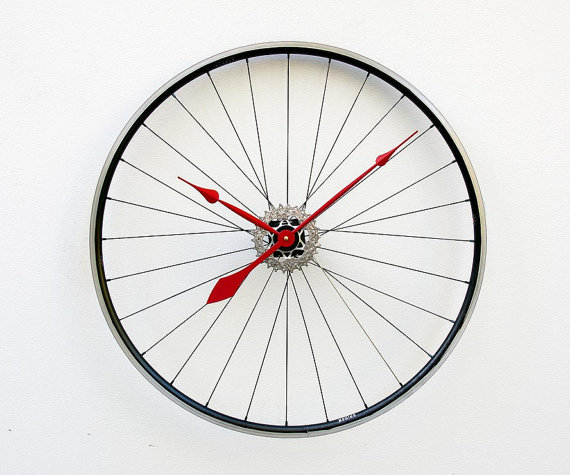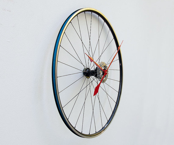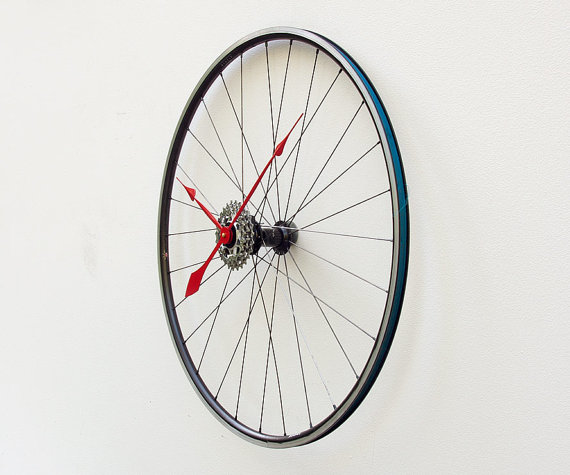 そしてこちらは自転車のホイールで出来た時計です。あの大きな自転車のホイールを使い見事に時計としてリサイクルさせています。