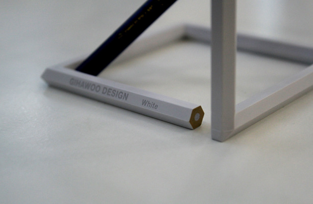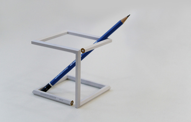 えんぴつを立てかける為の鉛筆立てを、鉛筆自身でつくる発想。なかなかうまれるものではありません。