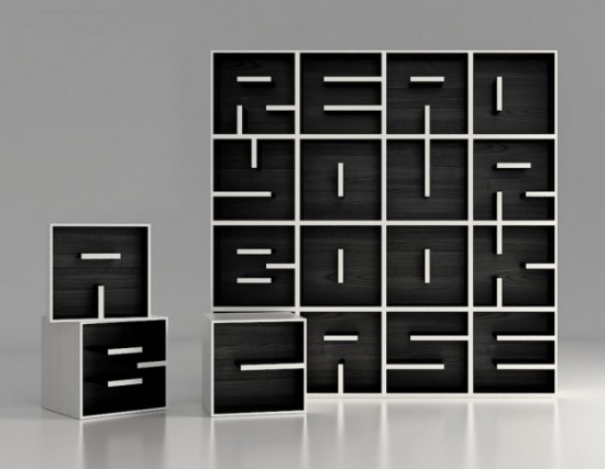 そしてこの本棚の名前も「Read your Bookcase」といいます。このユニークな文字で出来ている本棚は、イタリアの家具とインテリアデザインの会社であるSaporitiによってデザインされました。