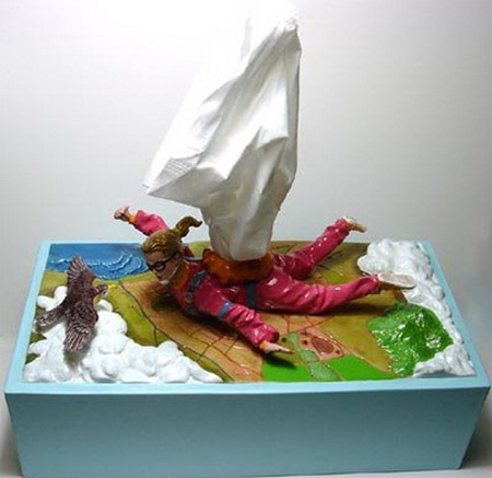 こちらはパラシュートが開く瞬間をティッシュになぞらえたもの。恐らく上で紹介したサーフィンのティッシュボックスと制作者は同じだとみられますが、非常によく出来ています。
