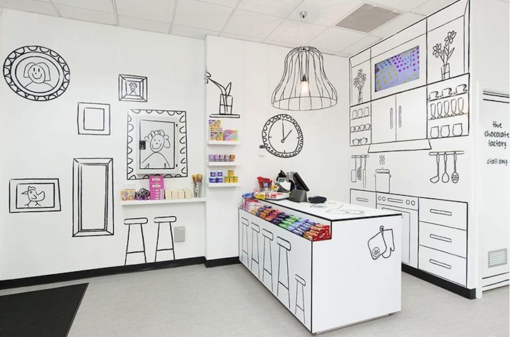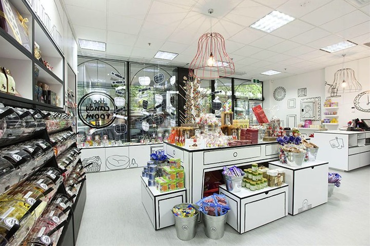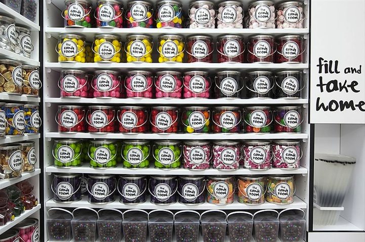 色とりどりのチョコレート菓子が瓶詰めされて店内に陳列されている様子は圧巻です。The Candy Roomは店内を白黒にすることによって、カラフルなお菓子を際立たせることに成功したデザインのお店と言えるでしょう。