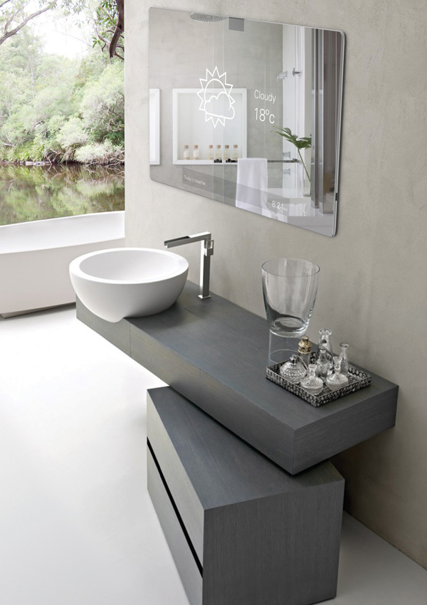 この洗面台はBathroom Innovation Award 2013のファイナリストまで残ったデザイン。お風呂場にある洗面台で音楽が聴けたり、映画がみることができるようにデザインされています。