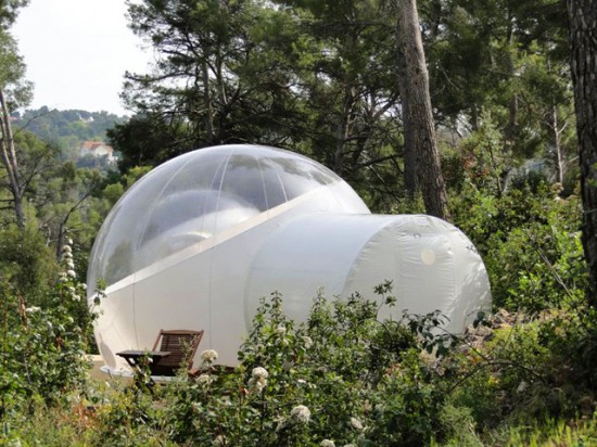 この泡の中にいるかのような気分が味わえるテントBubble treeは空気の圧力によって形を維持しているとのこと。